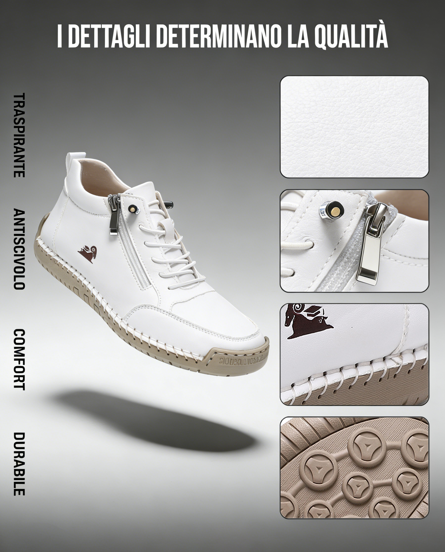 ✓ Suola Antiscivolo: Massima aderenza su superfici bagnate o scivolose. Cammina con stabilità e sicurezza, prevenendo cadute e proteggendo ginocchia e schiena.