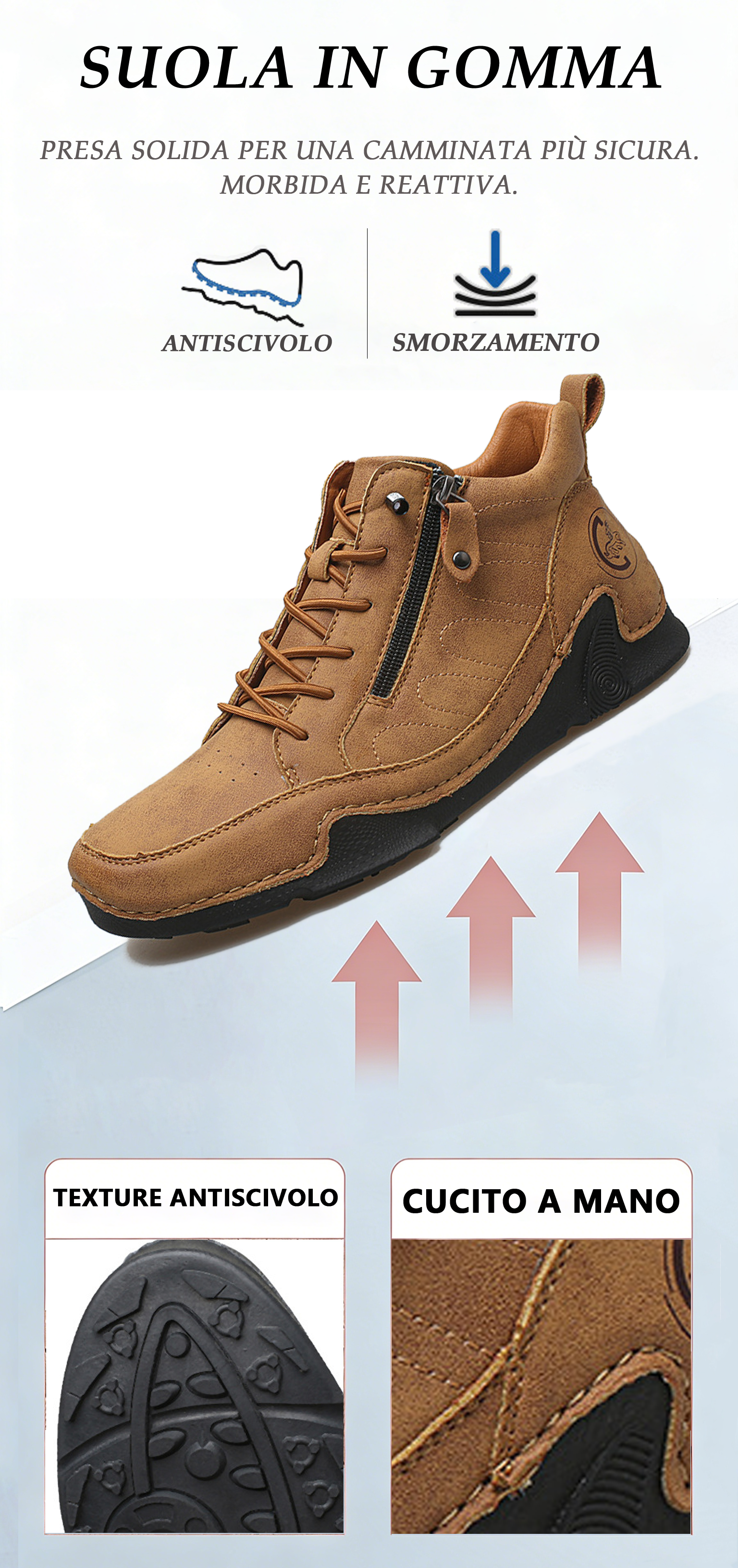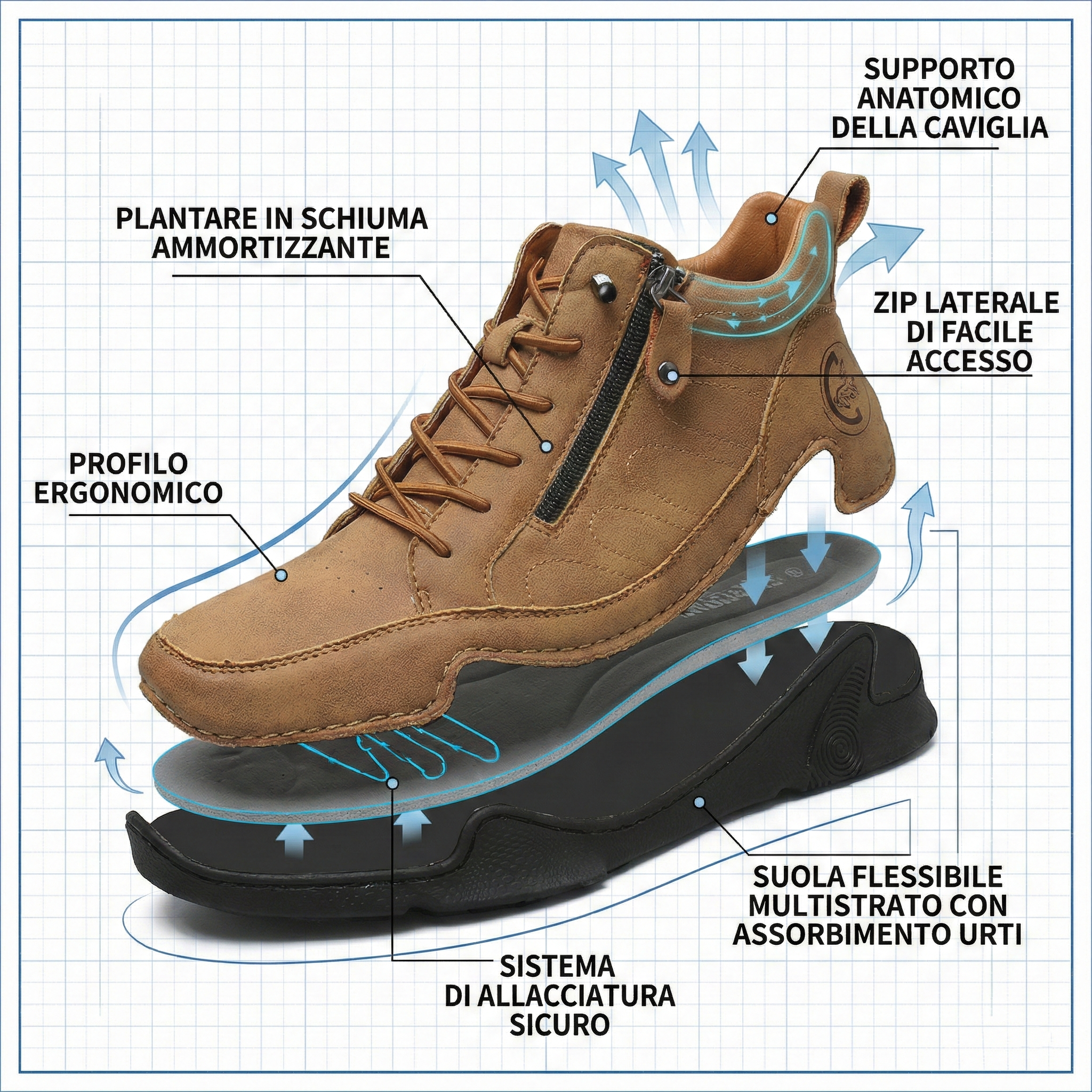 [🔥Sconto 50%]Stivali Uomo in Pelle Casual con Zip- Supporto Arco & Correggono la Postura e Riducono la Fatica - Suola Antiscivolo