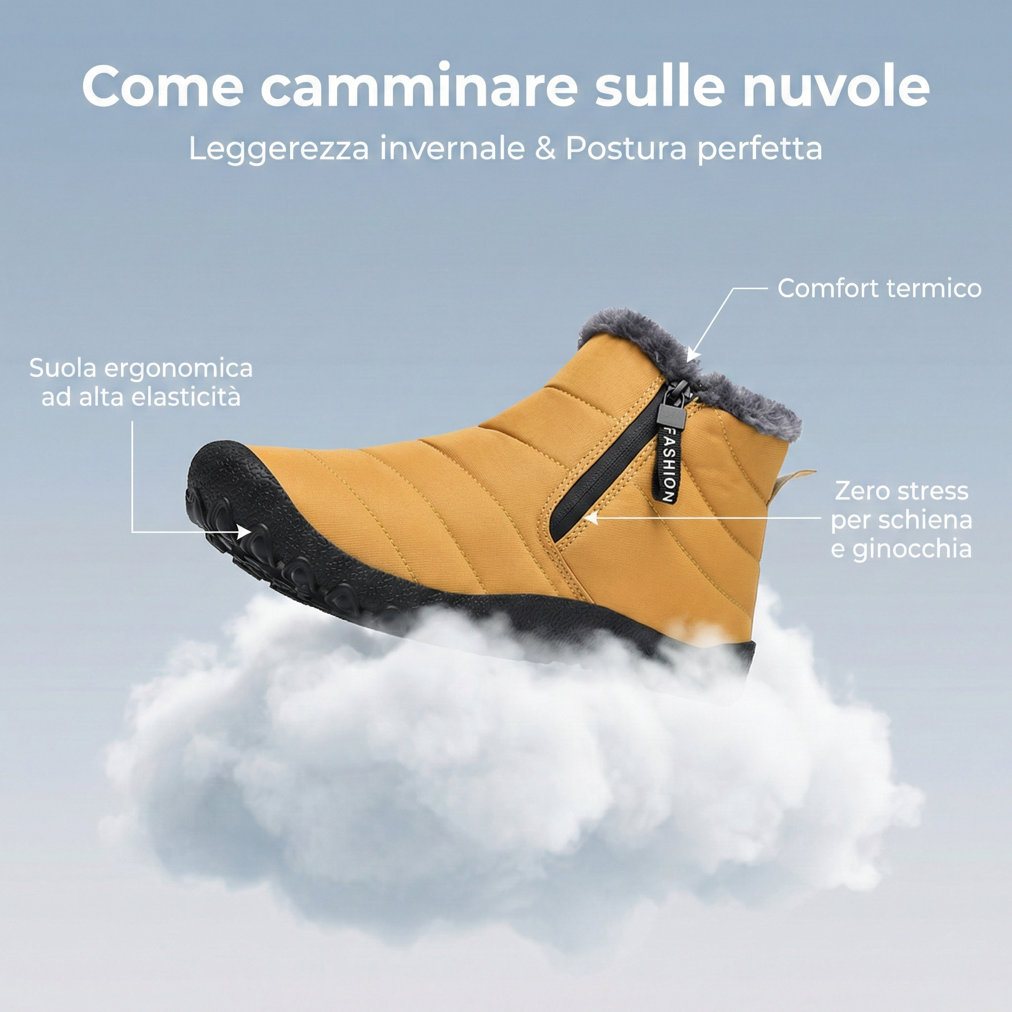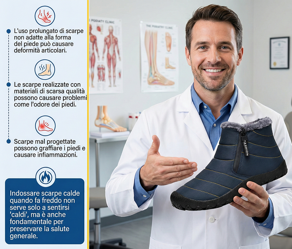 Dimentica le scarpe invernali pesanti e rigide. Questa calzatura ultraleggera va oltre il semplice comfort: è progettata per il tuo benessere posturale.